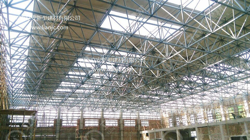 鋼骨架輕型板適用于輸煤棧橋、公共民用等建筑圍護屋面、樓面、墻面.鋼骨架輕型板由輕型鋼骨架、冷拔鋼絲網、改性水泥珍珠巖復合芯材(專有技術)、復合抗?jié)B耐磨涂層(專有技術)組成.鋼骨架輕型板集輕質、承重、節(jié)能、防火、隔聲、泄爆、抗震等功能于一體,既保持了傳統鋼筋混凝土構件安全度高、使用壽命長的優(yōu)點,又滿足了現代建筑對輕質、節(jié)能、環(huán)保的要求。
